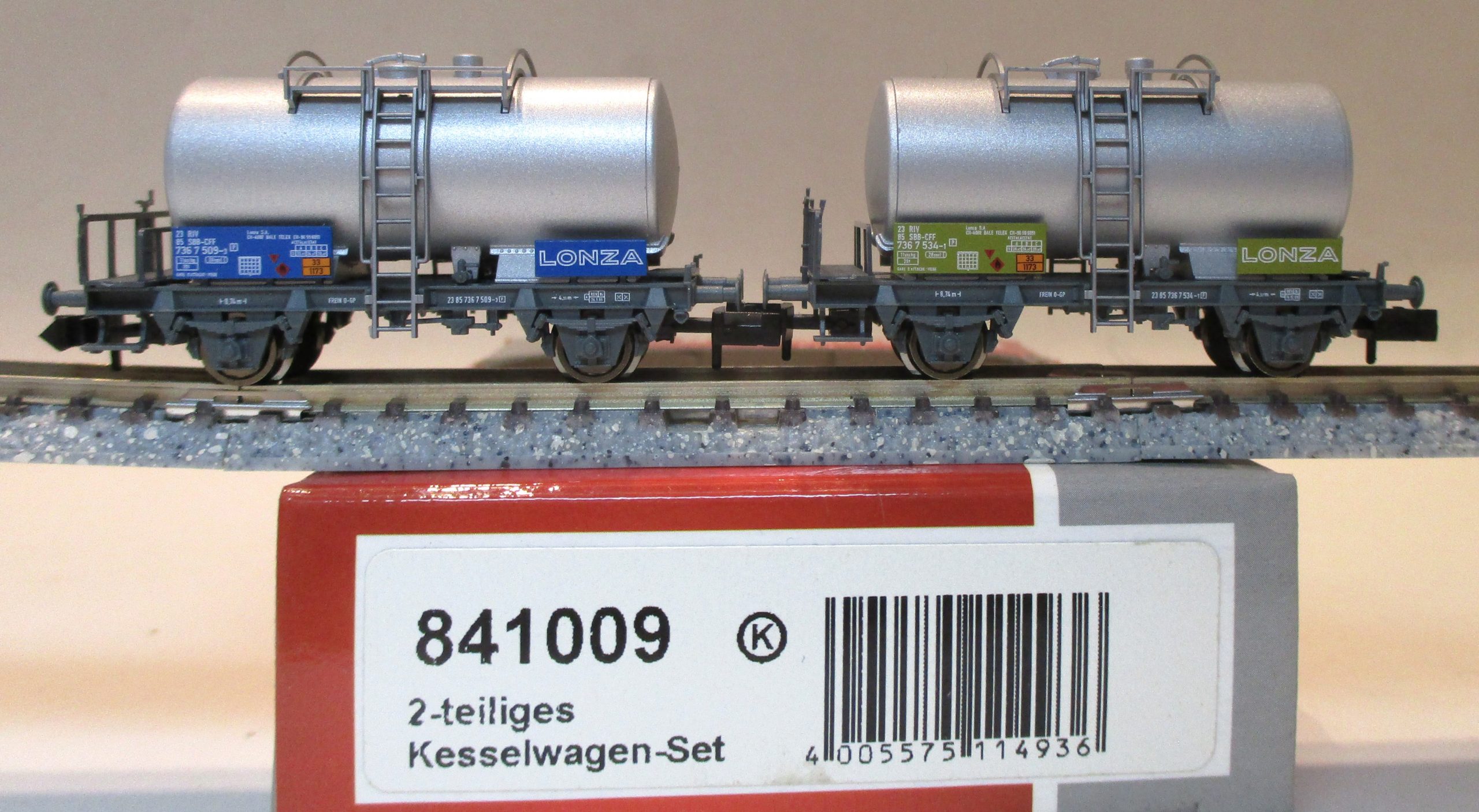 Fleischmann 841009 Kesselwagen-Paar/2-achs./BrB ‚Lonza‘ silber SBB-4