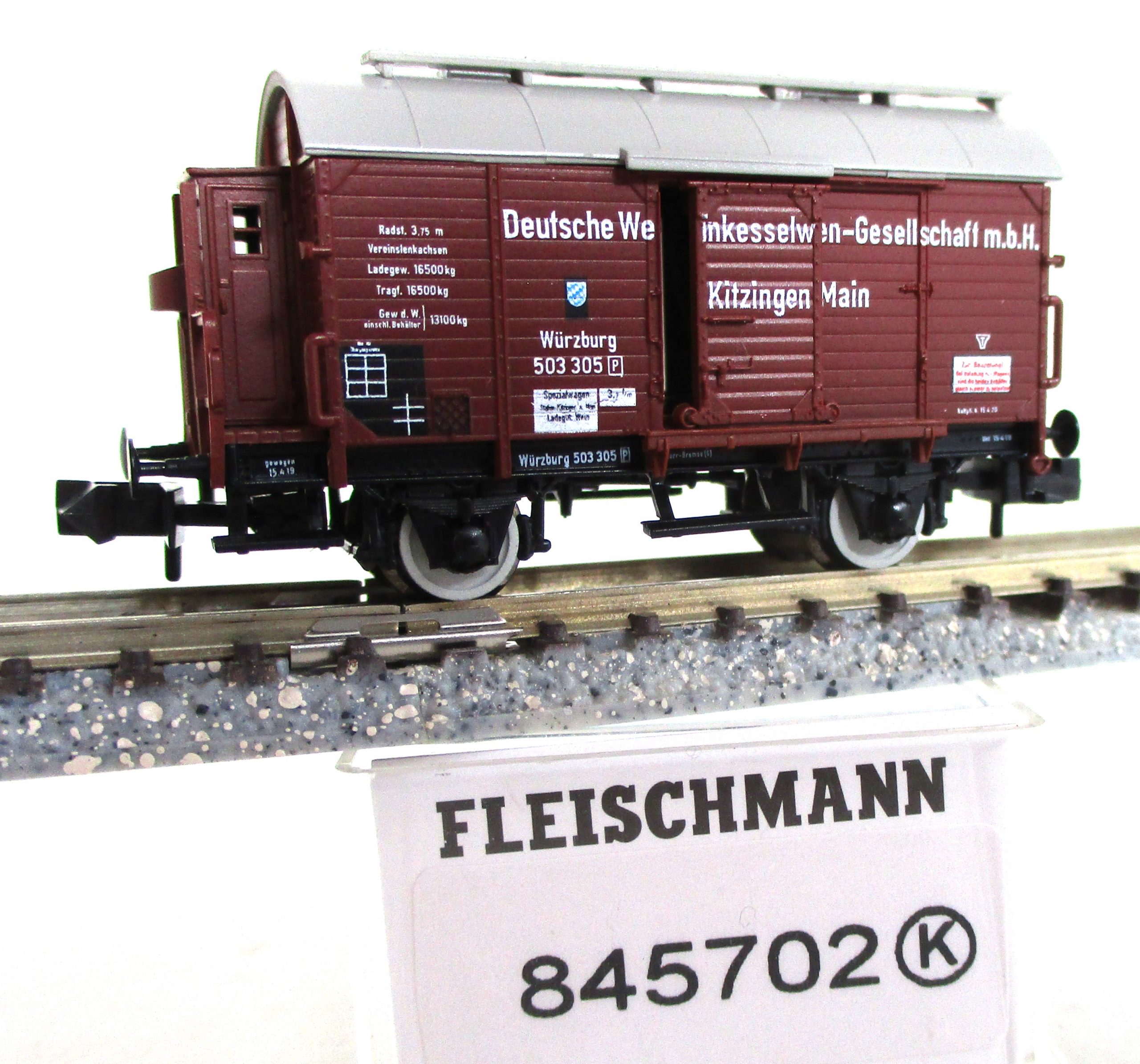 Fleischmann 845702 Weinfasswagen/2-achs./BrH ‚Deutsche-Weinkessel-GmbH‘ braun K.Bay.Sts.B.