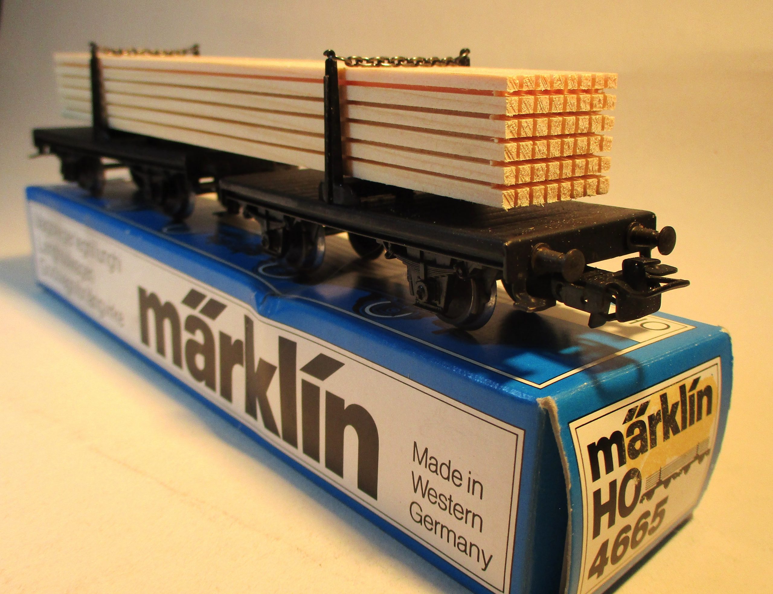 Märklin 4665 Drehschemelwagen-Paar mit Holzladung schwarz DB-3
