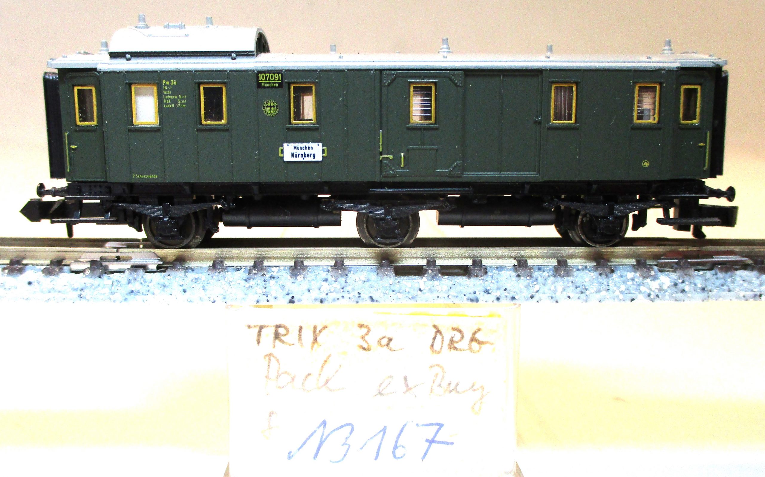 Minitrix 13167 Gepäckwagen/3-achs. Pw3ü grün DRG