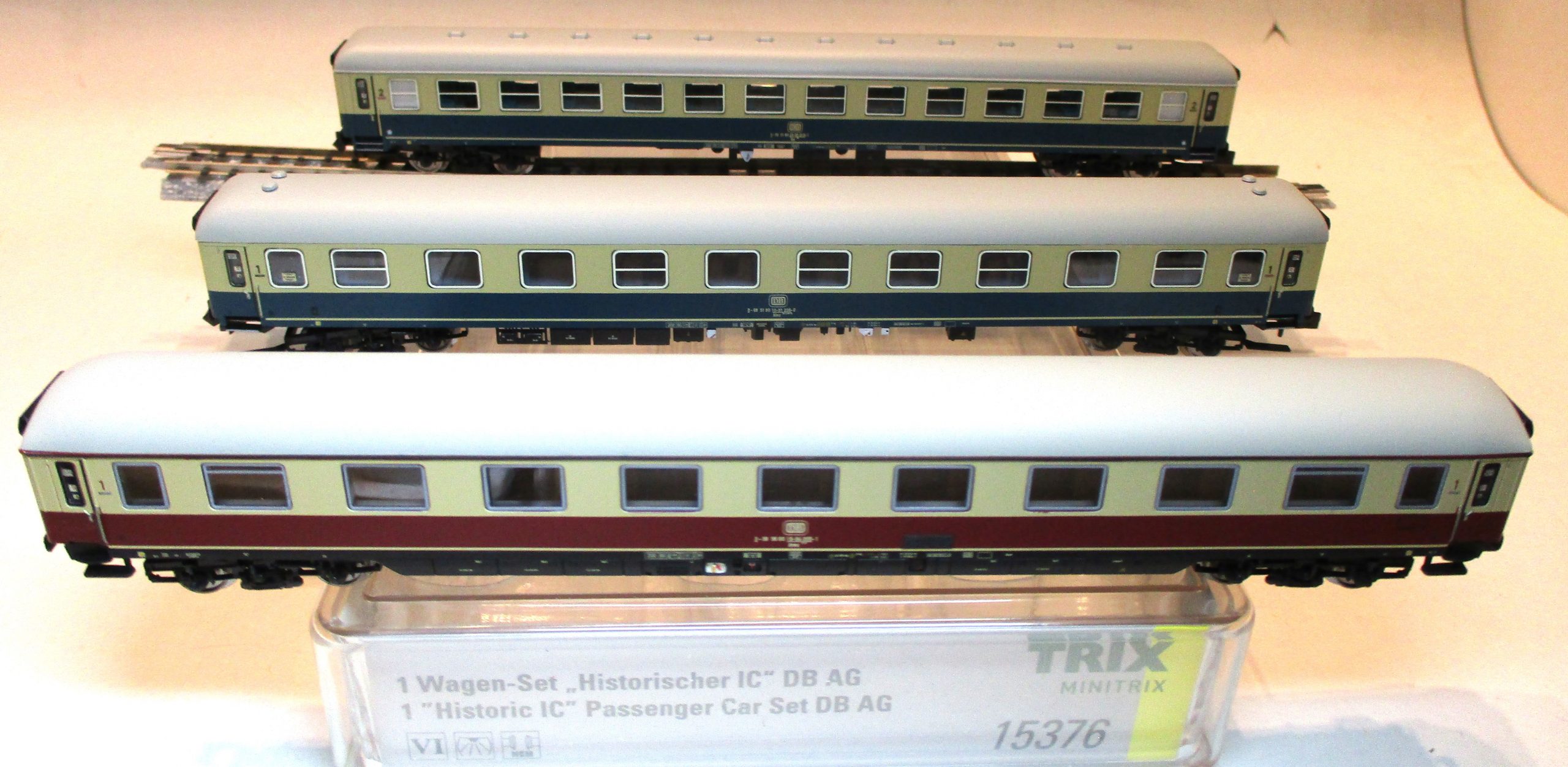 Minitrix 15376 Wagen-Set ‚Historischer IC 2410‘ (1 x 1. Klasse und 1 x 2. Klasse), beige/türkis + 1. x 1.Klasse beige/rot DBAG-6